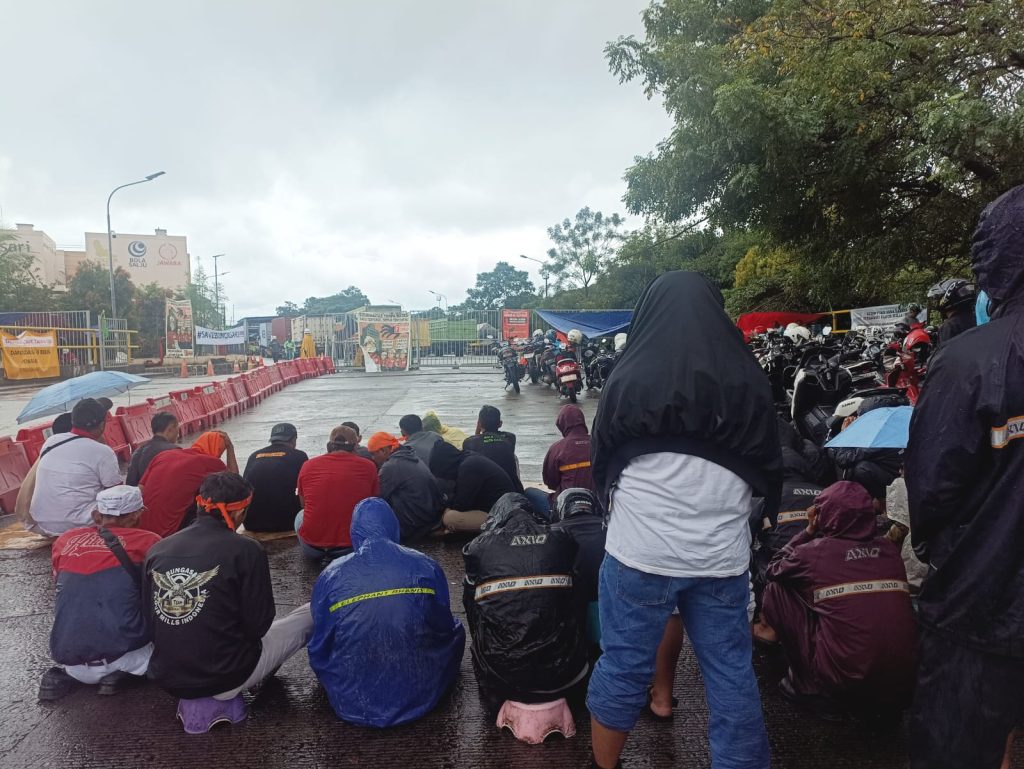 Cilegon, 18 Juni 2025 — Hujan deras yang mengguyur kawasan industri PT Bungasari Flour Mills Indonesia tak menyurutkan semangat perjuangan buruh.
