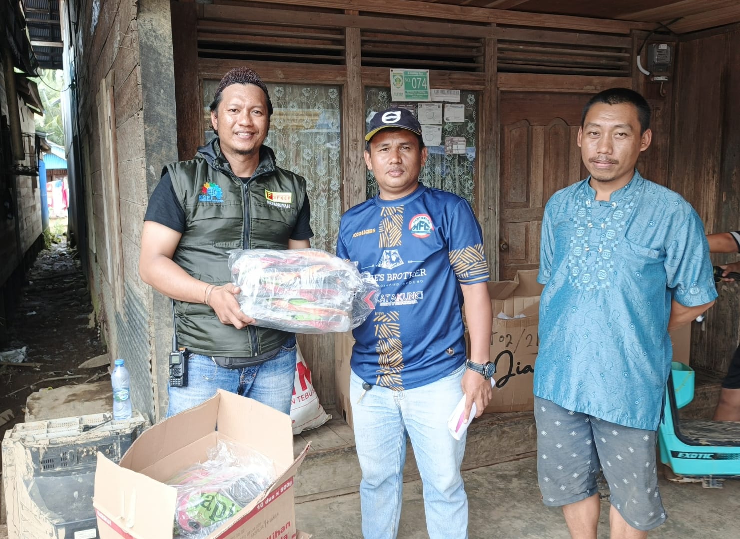 Tabalong, Fspkep.id | Bung Hamid Selaku Bendahara dan Kawan Kawan PUK SP KEP SIS Admo Tanjung, Tabalong, Mengantarkan Paket Sembako…