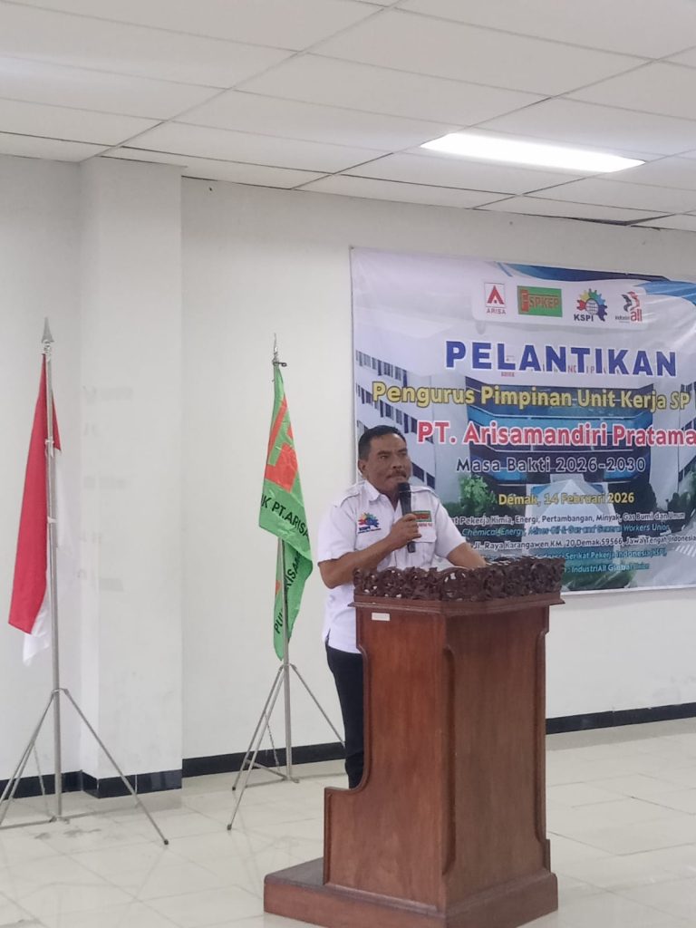 Demak, Fspkep.id | Pengurus Unit Kerja (PUK) SPKEP PT Arisamandiri Pratama resmi dilantik oleh Ketua Umum FSP KEP-KSPI, Sunandar, pada Sabtu, 14 Februari 2026, bertempat di Aula Lantai 3 perusahaan.