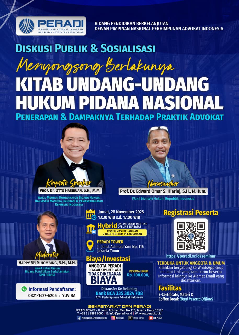 PERADI Gelar Diskusi Publik Bahas Dampak KUHP Nasional terhadap Praktik Advokat